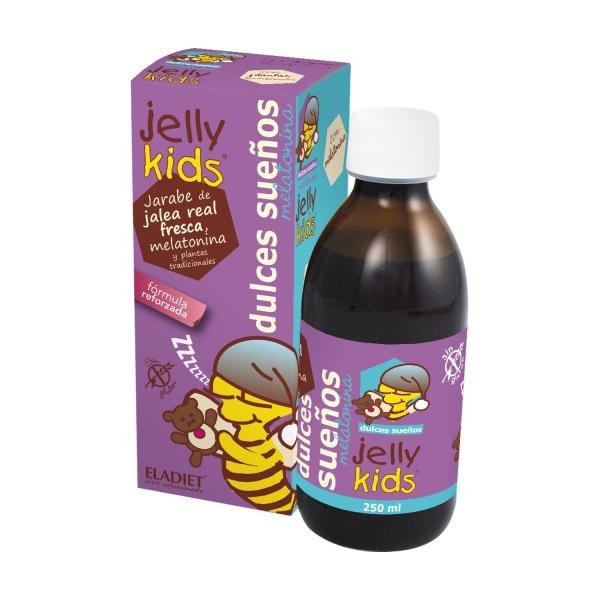 JellyKids Dulces Sueños contiene melatonina que contribuye a reducir el tiempo necesario para conciliar el sueño y plantas tradicionales: manzanilla, tila, melisa y lavanda. La melisa mejora la calidad del sueño.